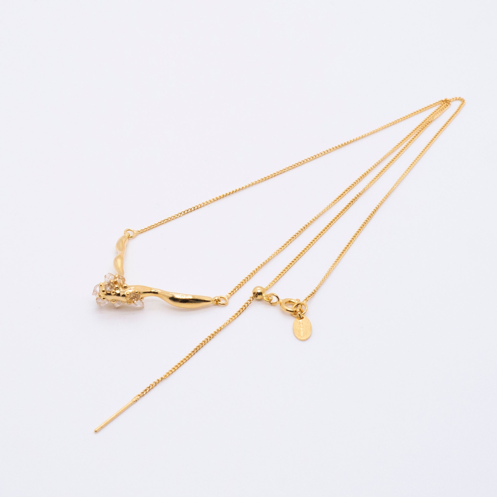/ 商品規格 - 材質:黃銅厚鍍18K金墜子、純銀厚鍍18K金鏈、閃靈鑽(赫基蒙水晶)