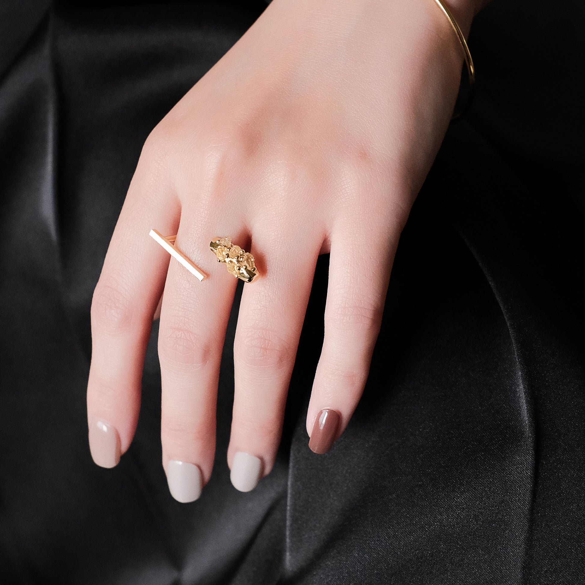 宇宙冰晶系列 - 胭紅薄霧 暴風冰晶單指戒 - 厚鍍18K金