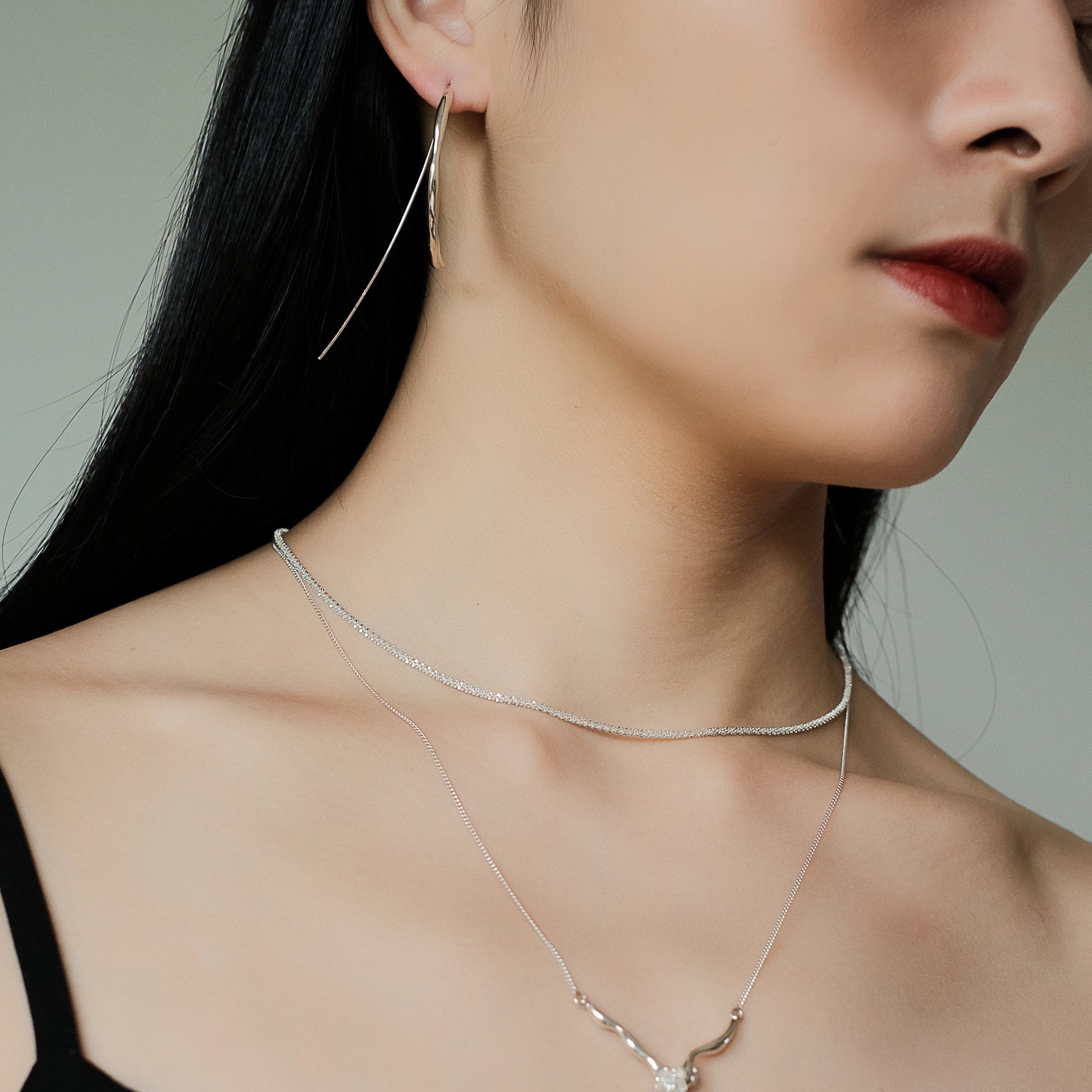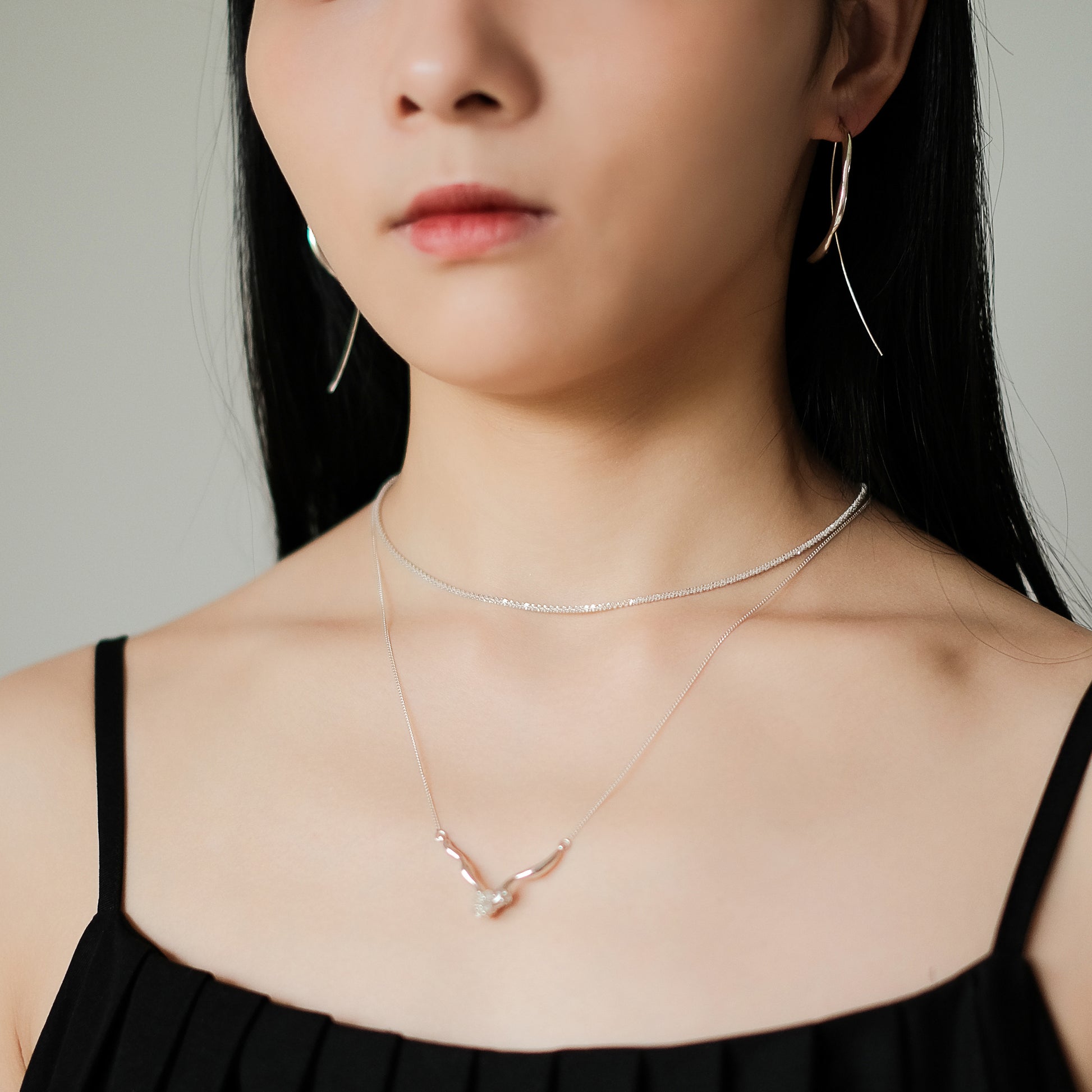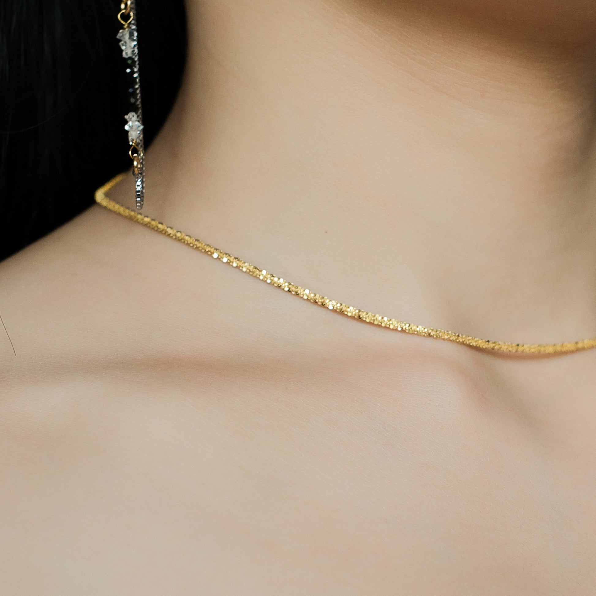 宇宙冰晶 胭紅薄霧 雪花素短鍊-純銀 / 純銀厚鍍18K金