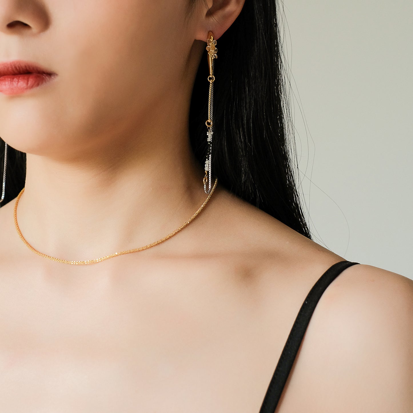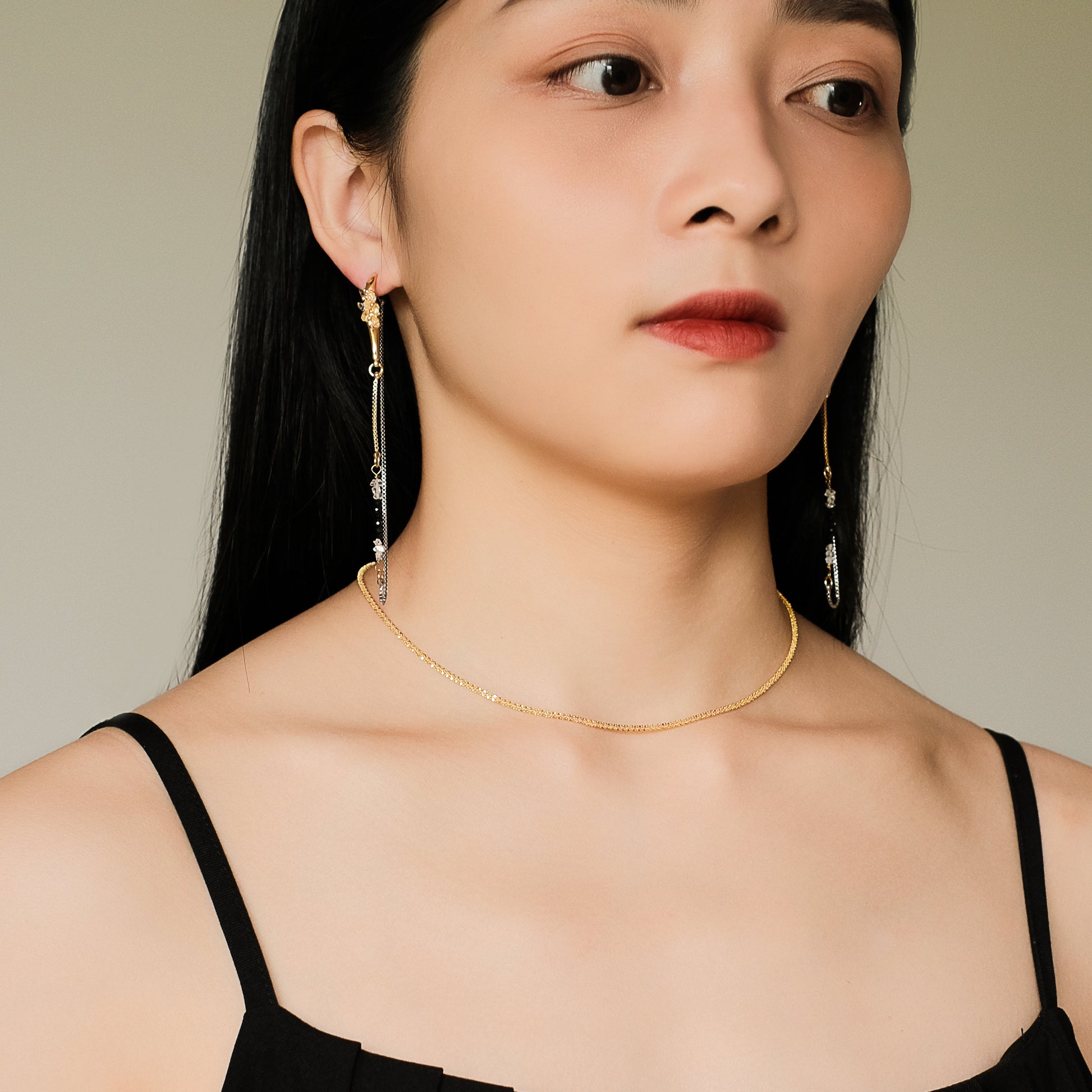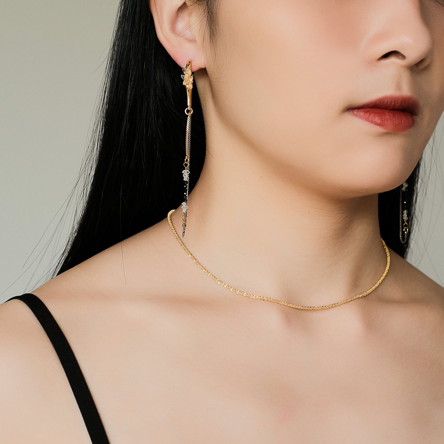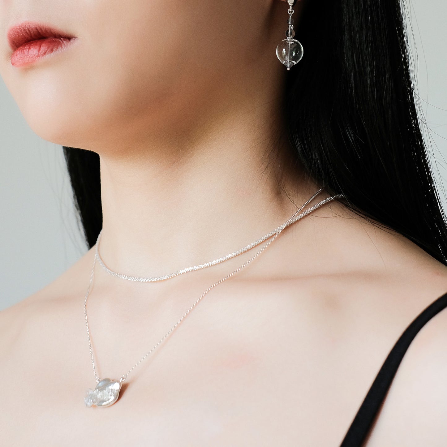 宇宙冰晶 胭紅薄霧 雪花素短鍊-純銀 / 純銀厚鍍18K金