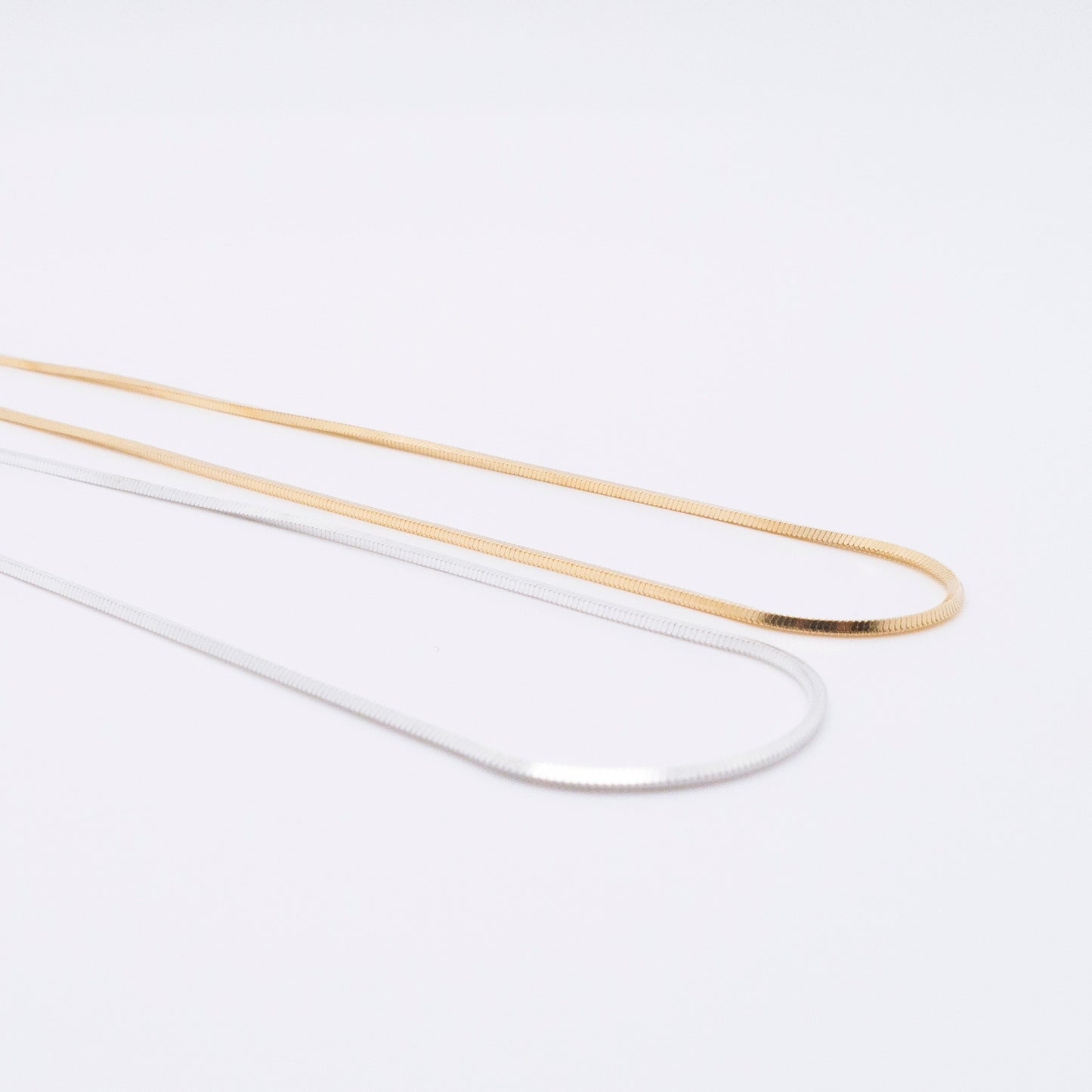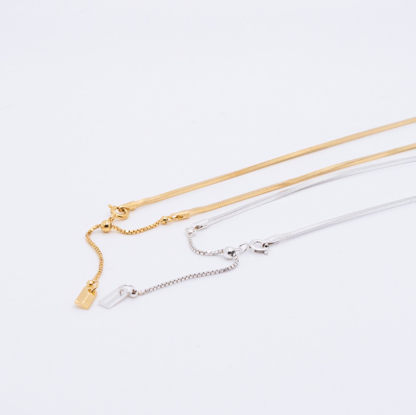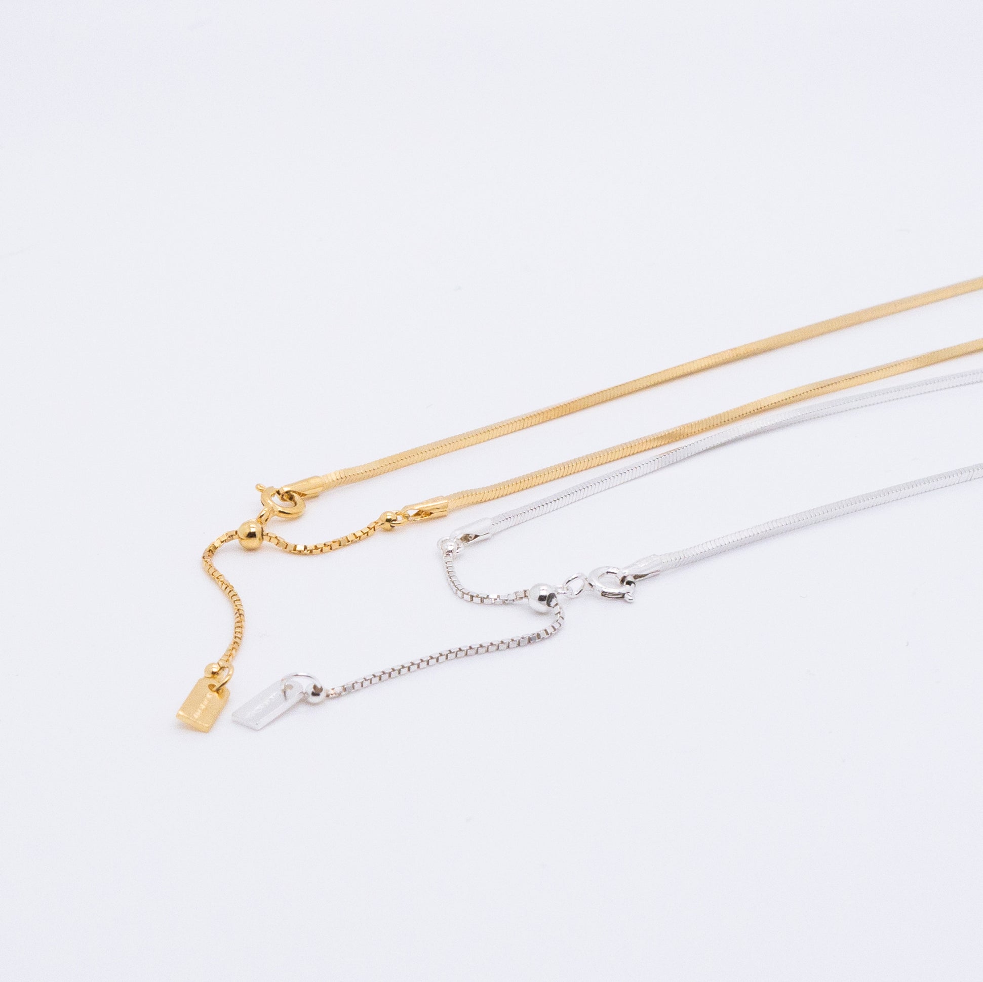 宇宙冰晶系列 - 胭紅薄霧 蛇骨方素鍊 - 純銀 / 純銀厚鍍18K金