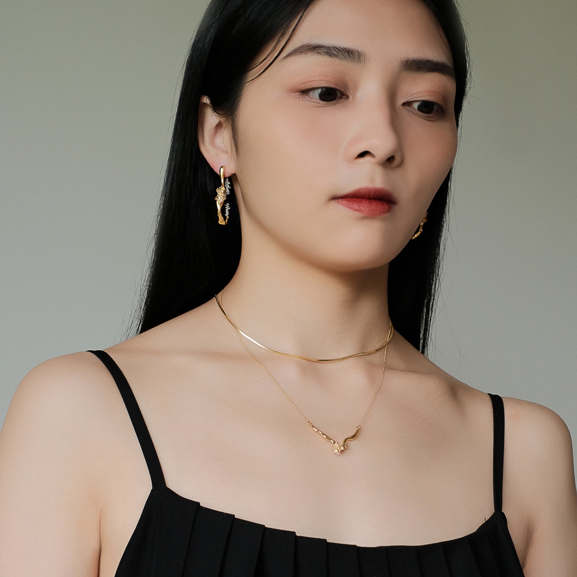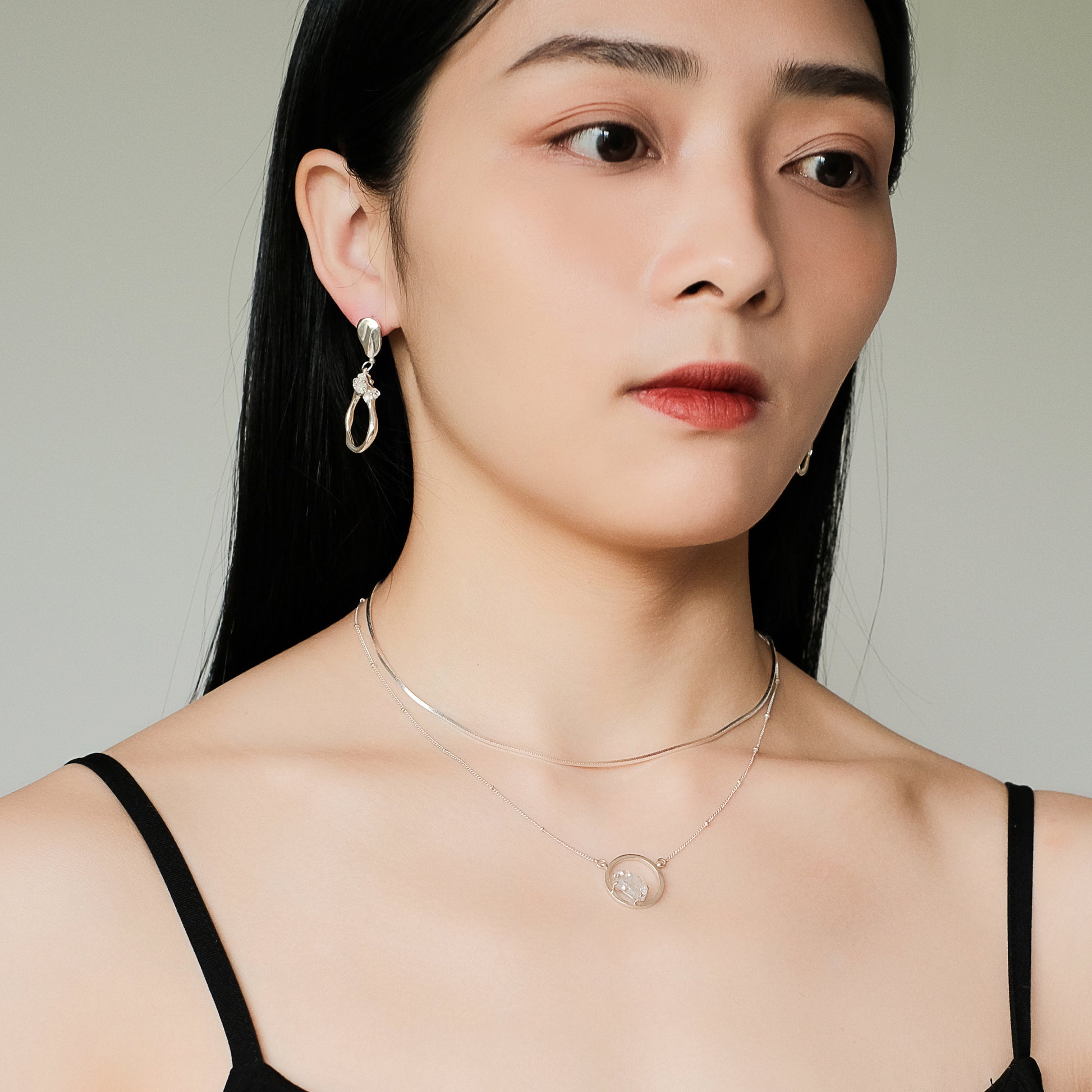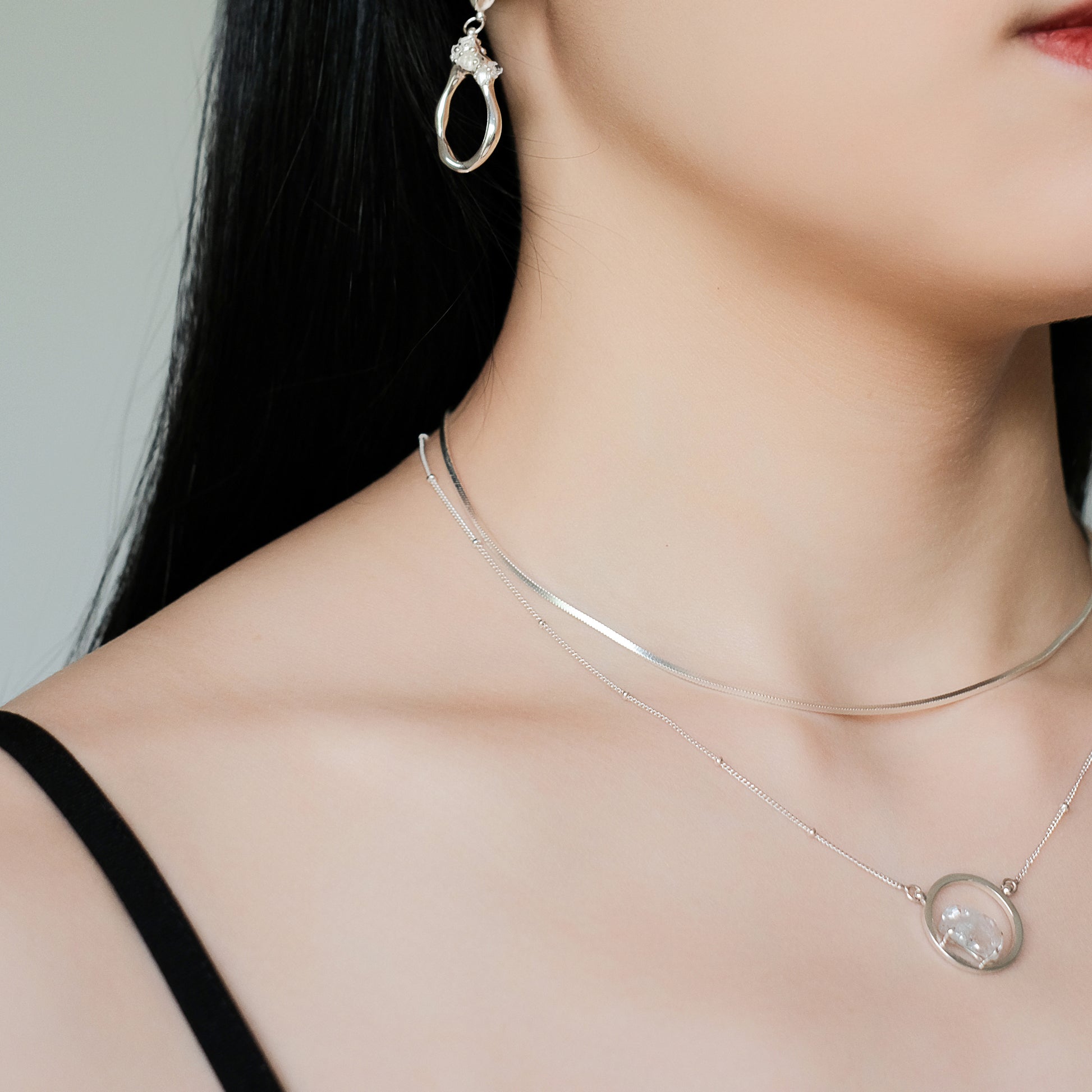 宇宙冰晶系列 - 胭紅薄霧 蛇骨方素鍊 - 純銀 / 純銀厚鍍18K金
