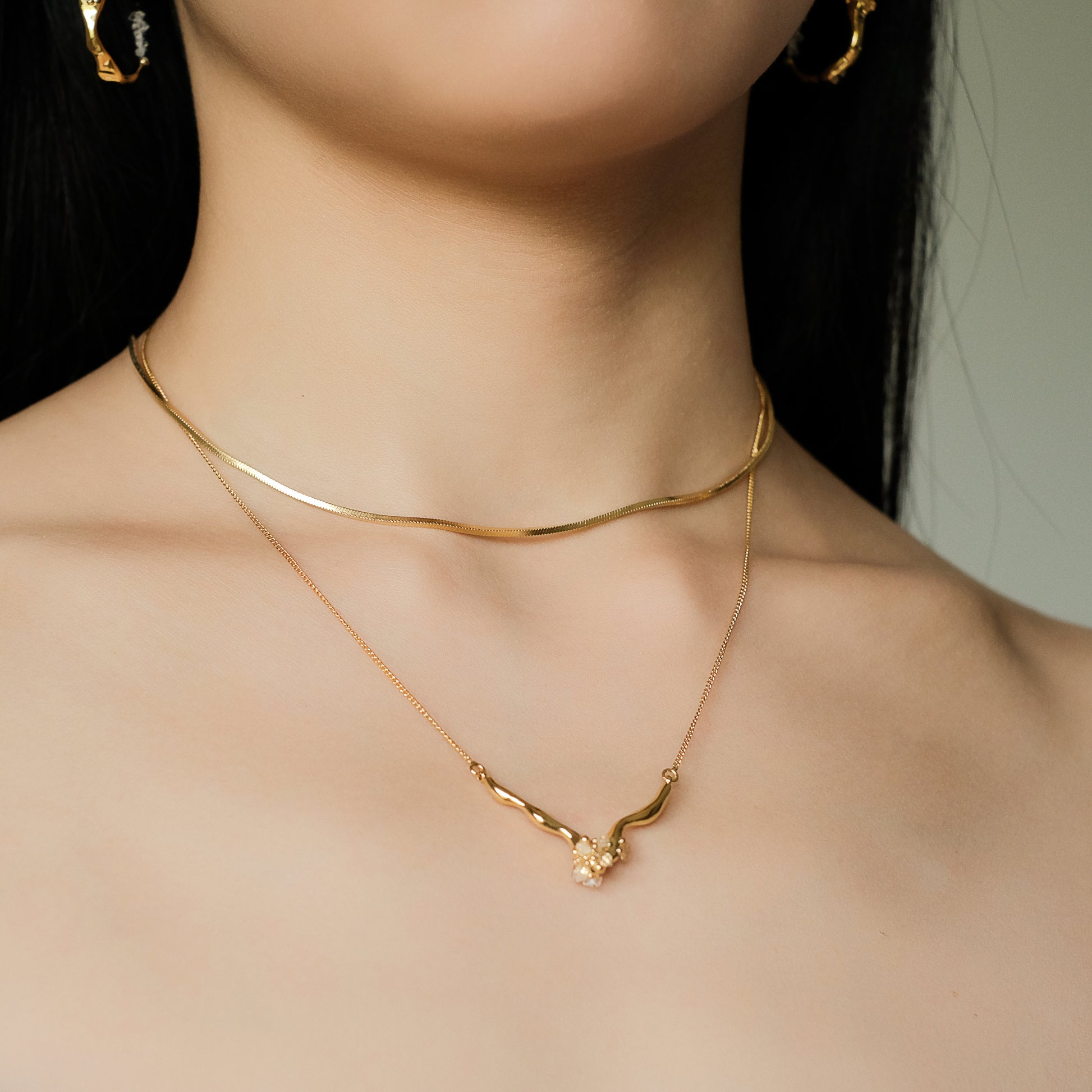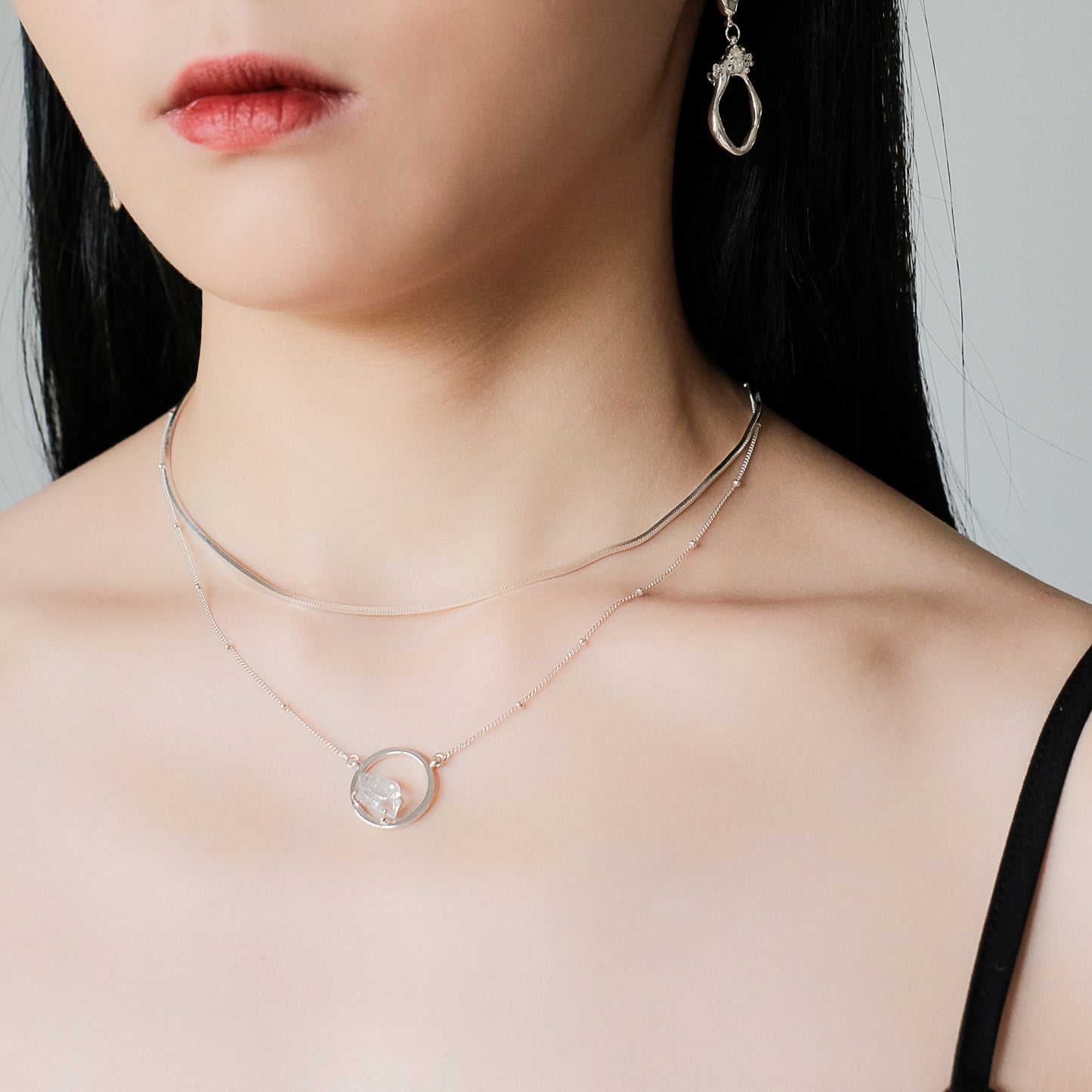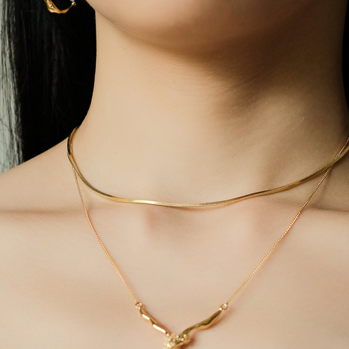 宇宙冰晶 胭紅薄霧 蛇骨方素短鍊-純銀 / 純銀厚鍍18K金