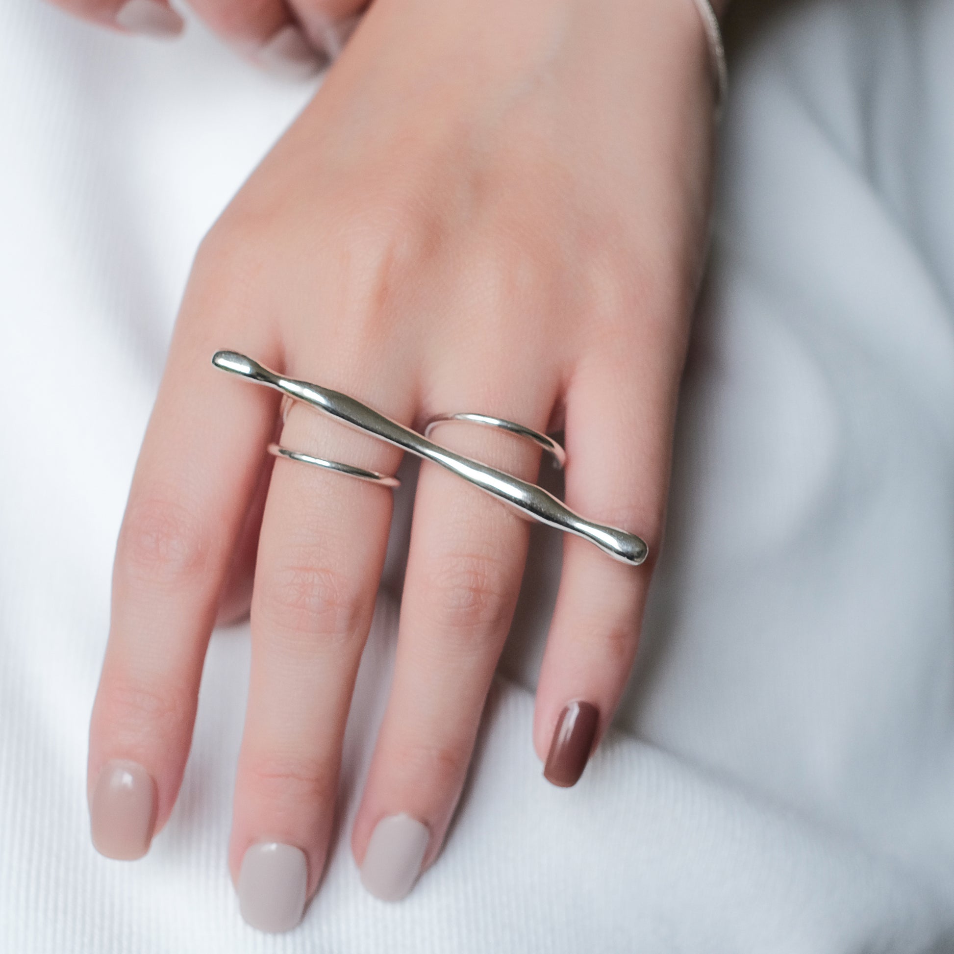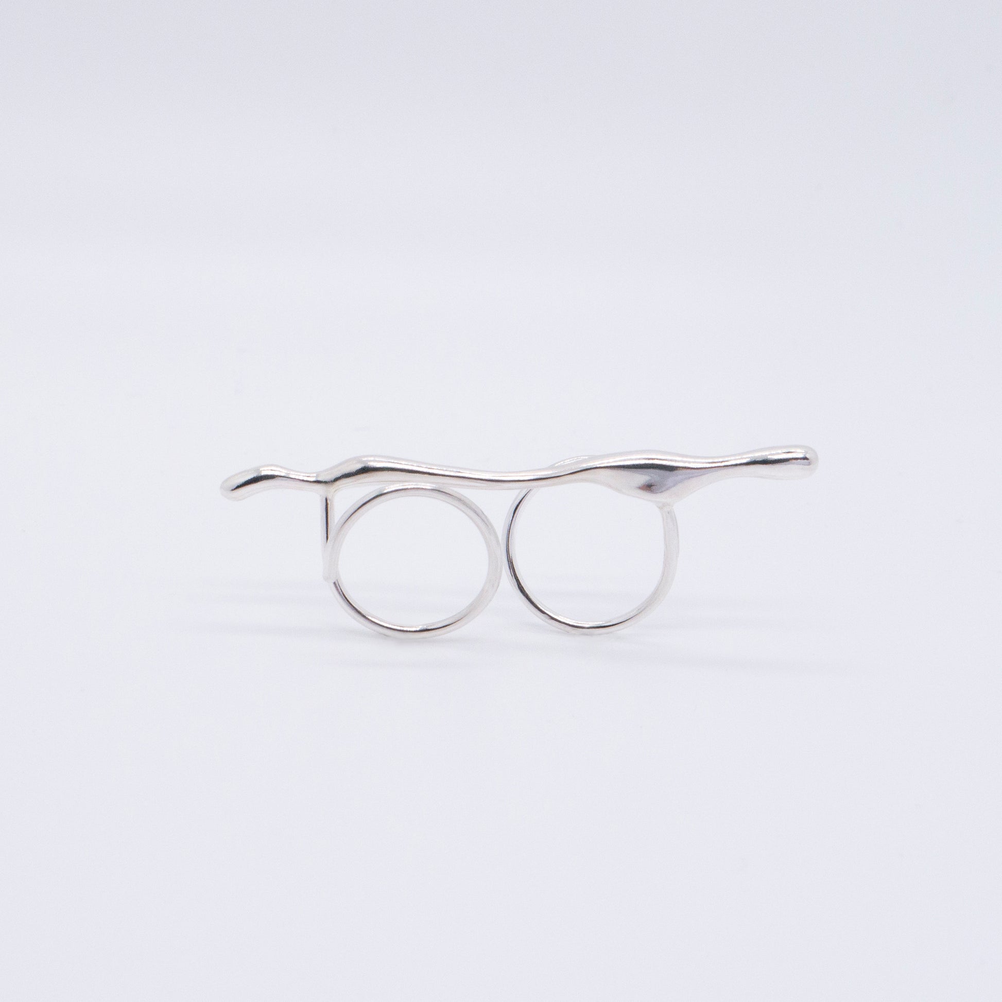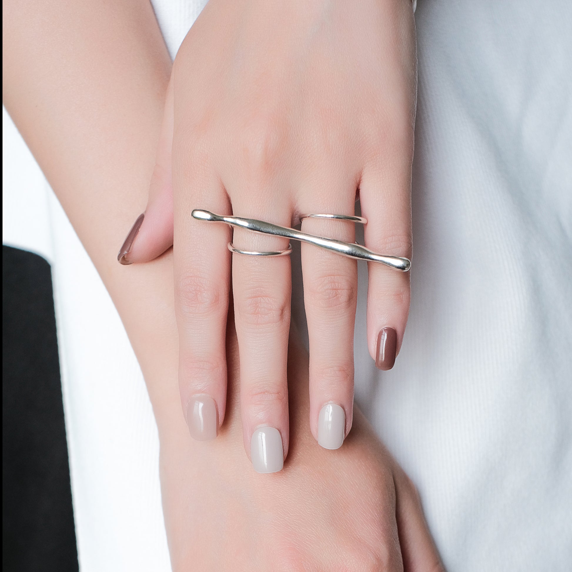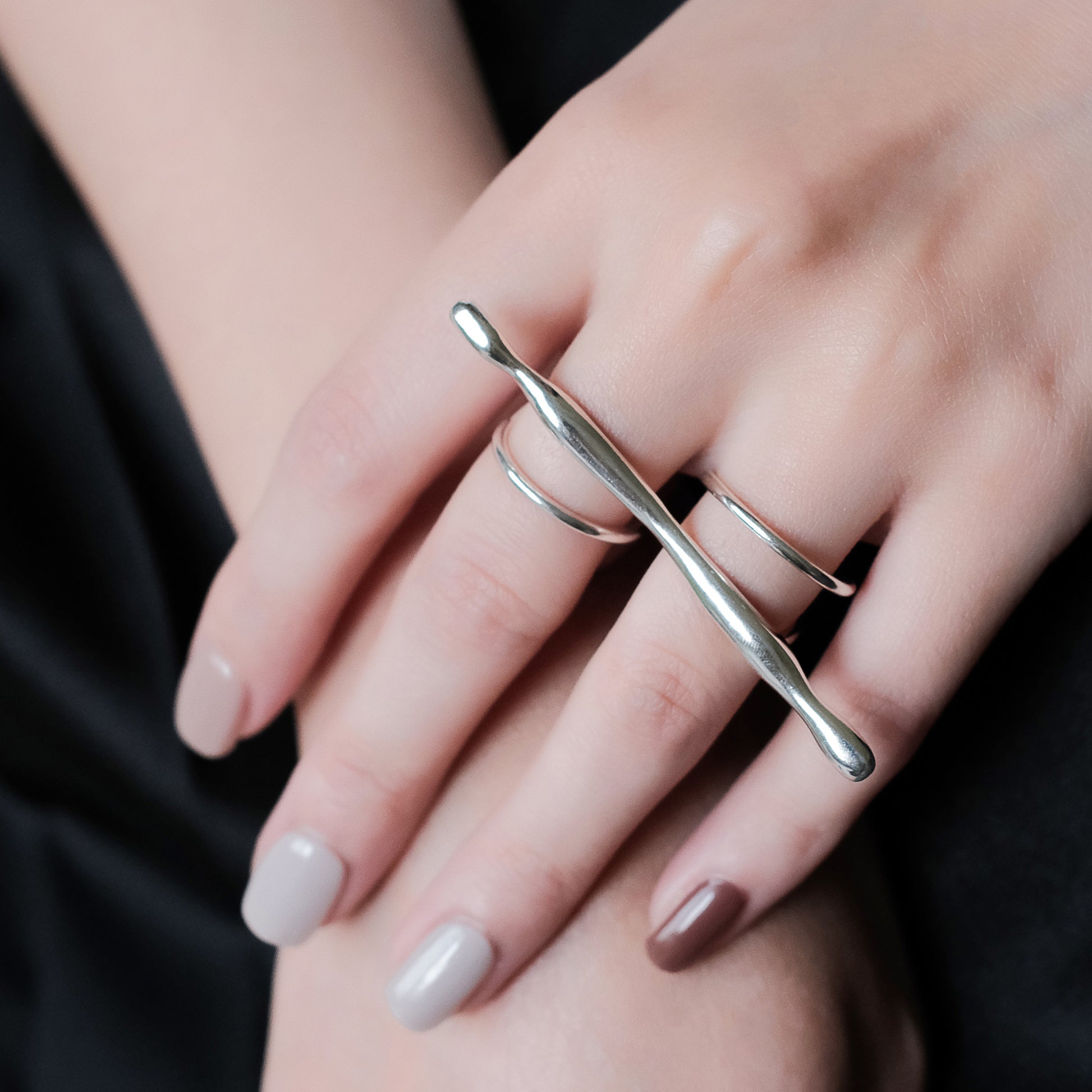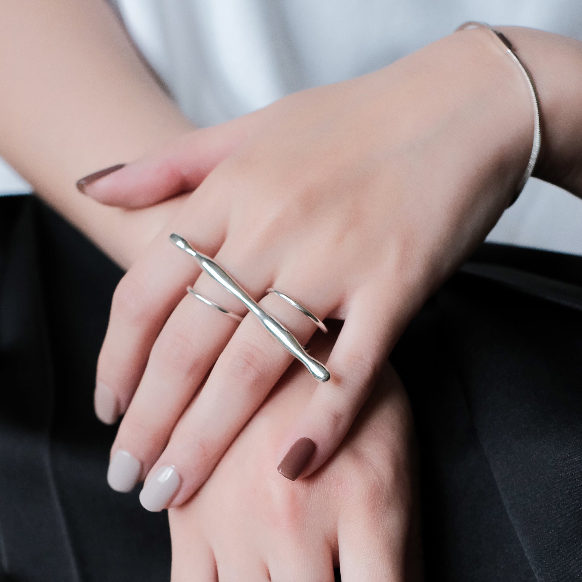 宇宙冰晶系列 - 胭紅薄霧 暴風雙指戒 - 純銀