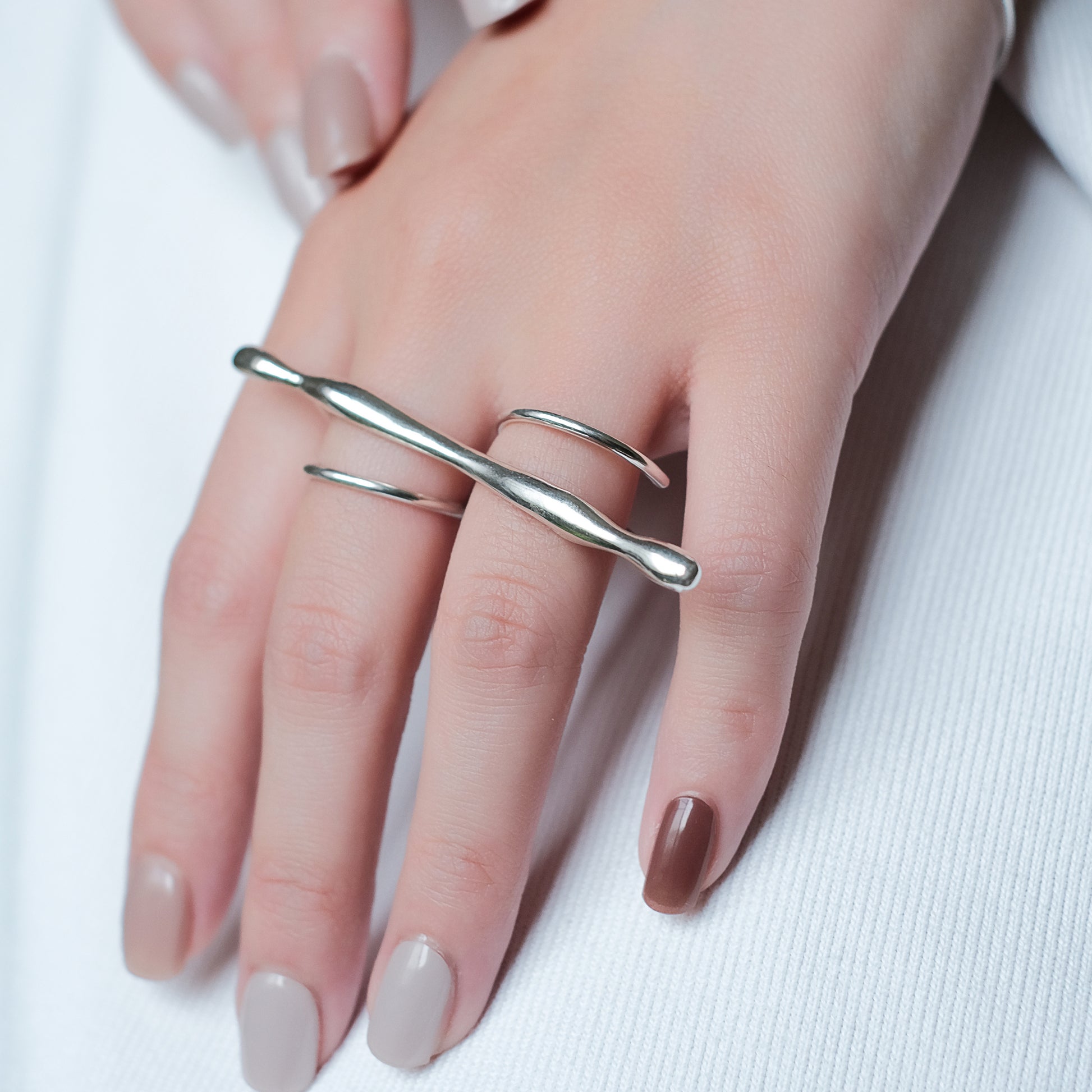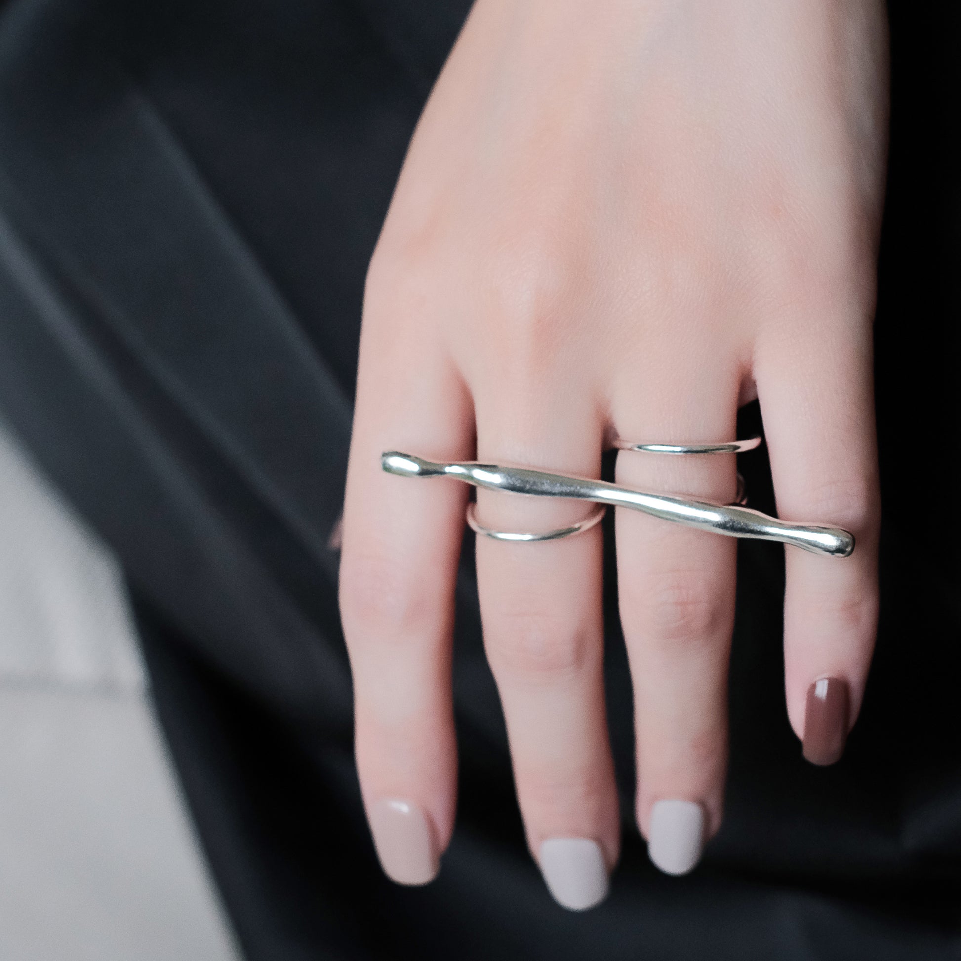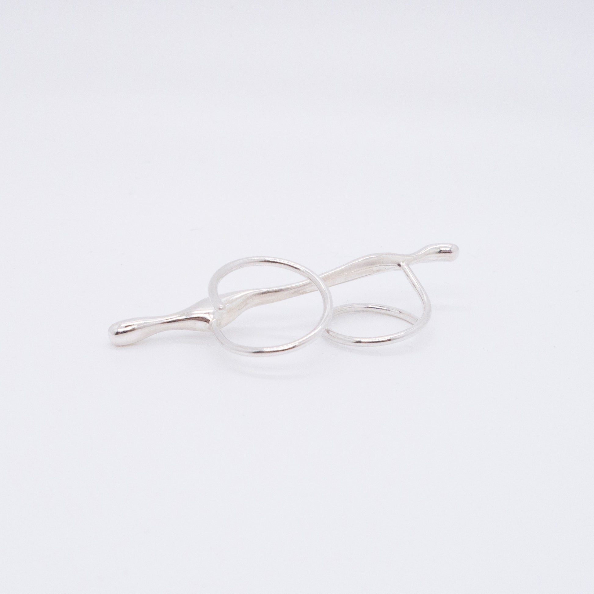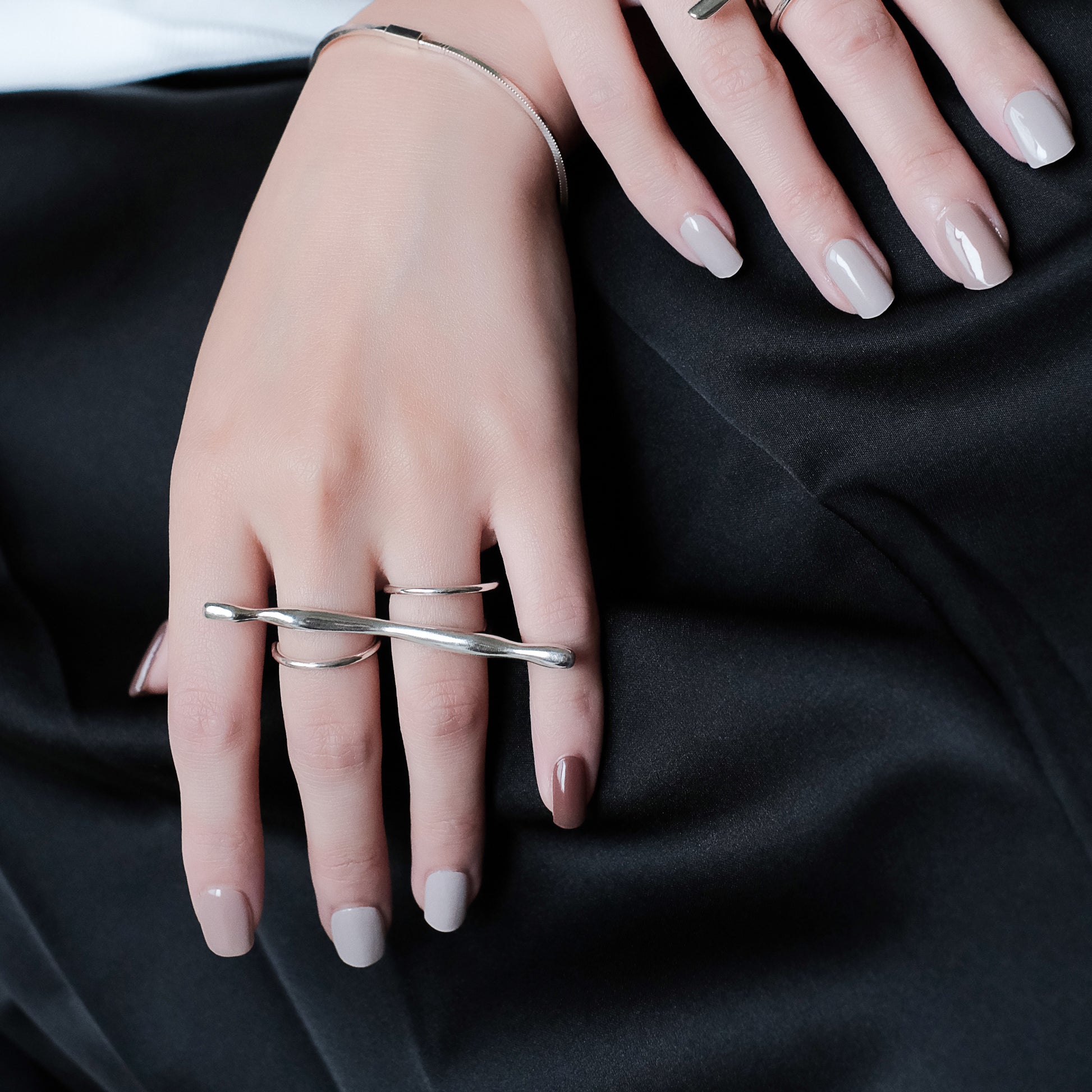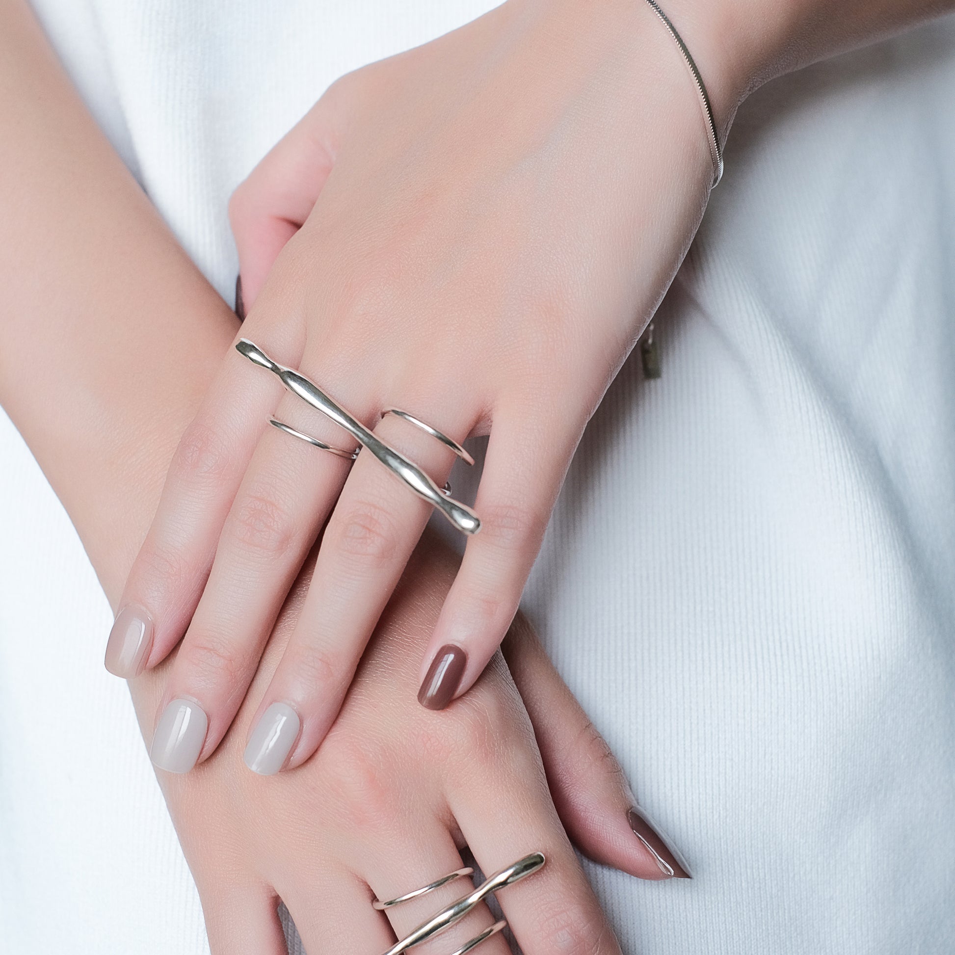 宇宙冰晶系列 - 胭紅薄霧 暴風雙指戒 - 純銀