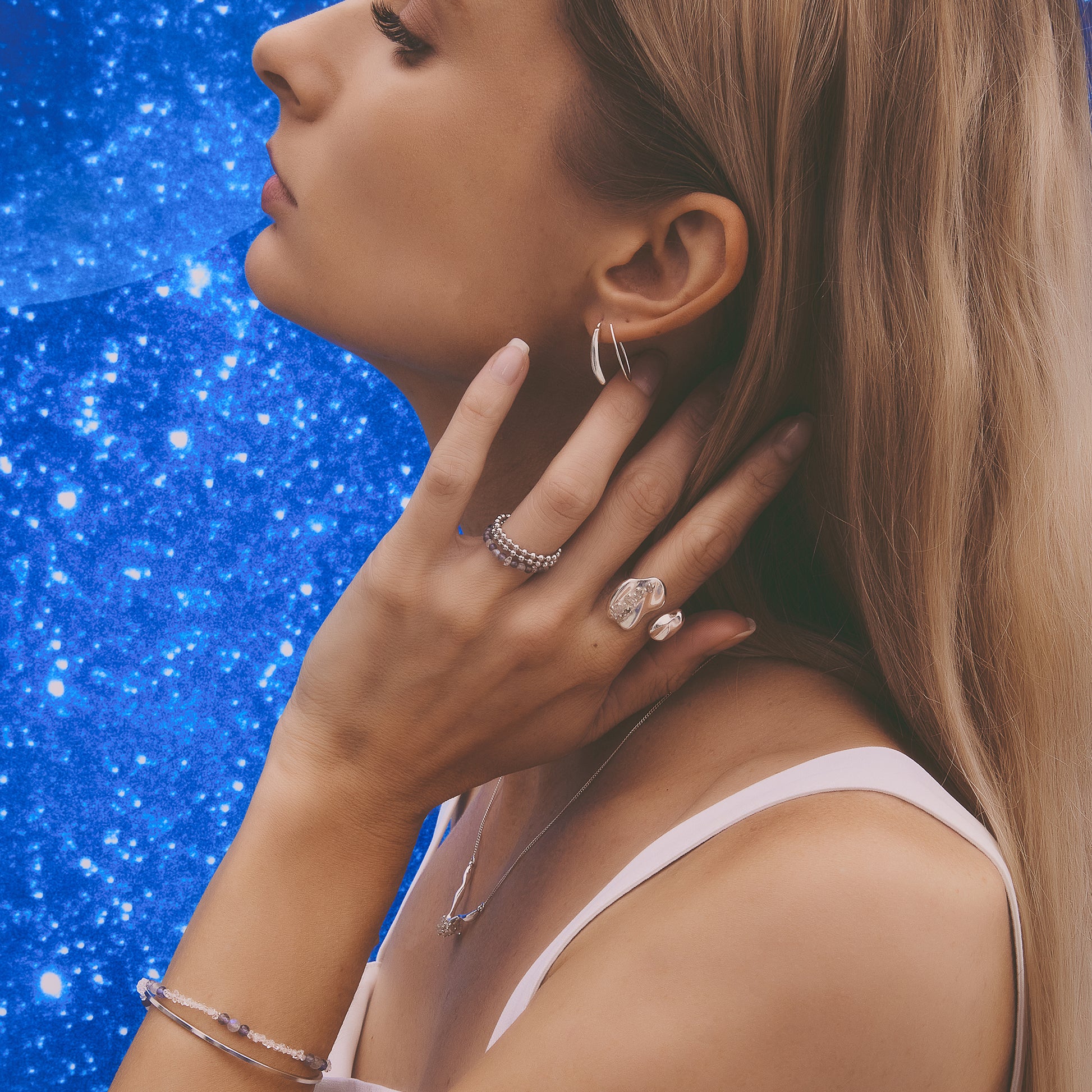 宇宙冰晶系列 - 胭紅薄霧 暴風簡約小耳環-純銀