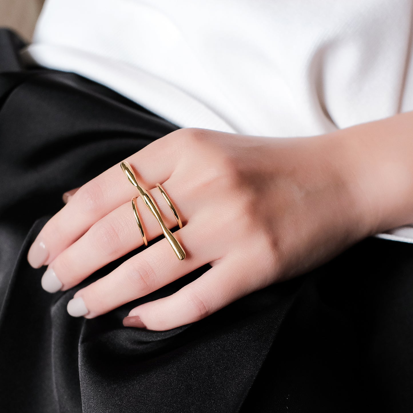 宇宙冰晶系列 - 胭紅薄霧 暴風單指戒 - 厚鍍18K金