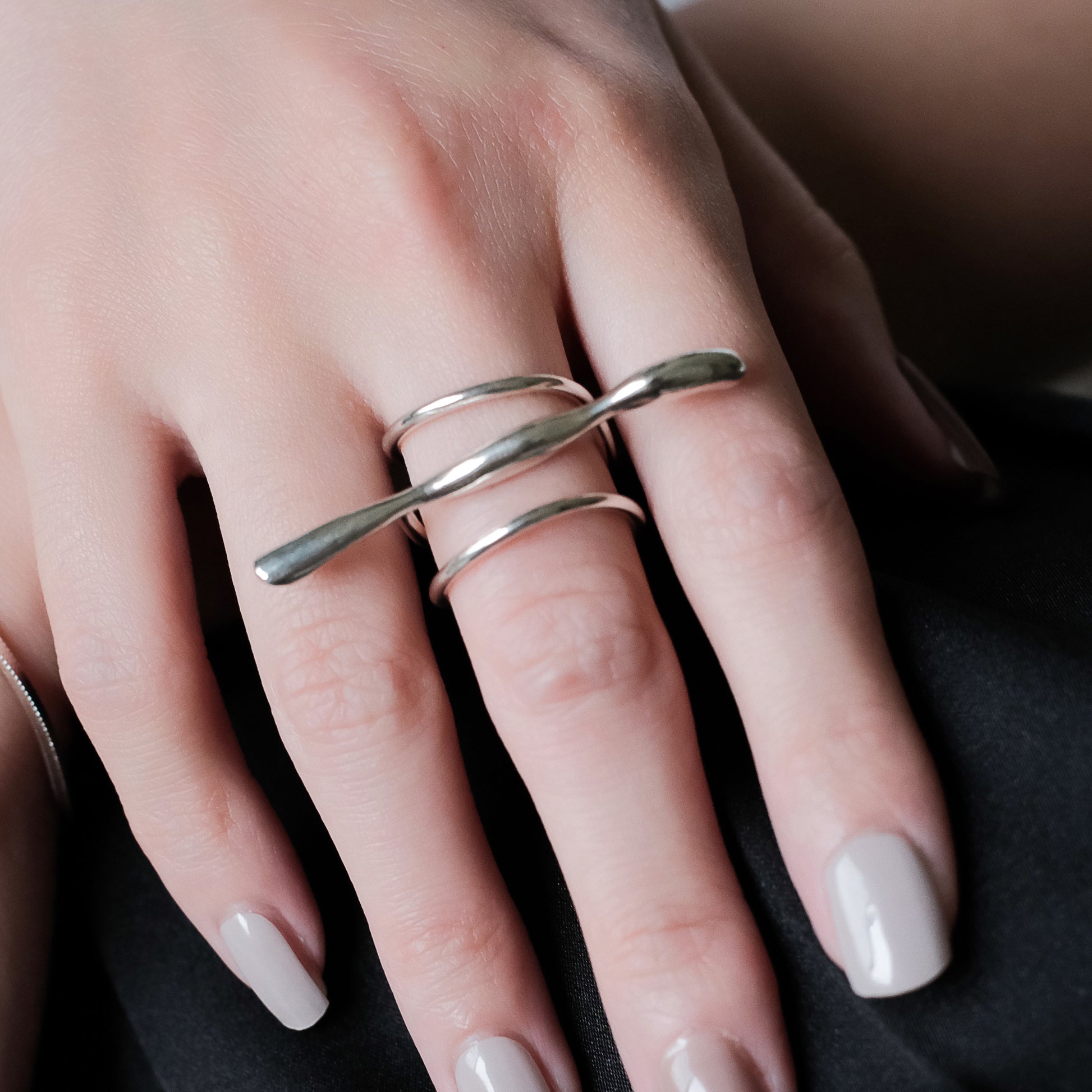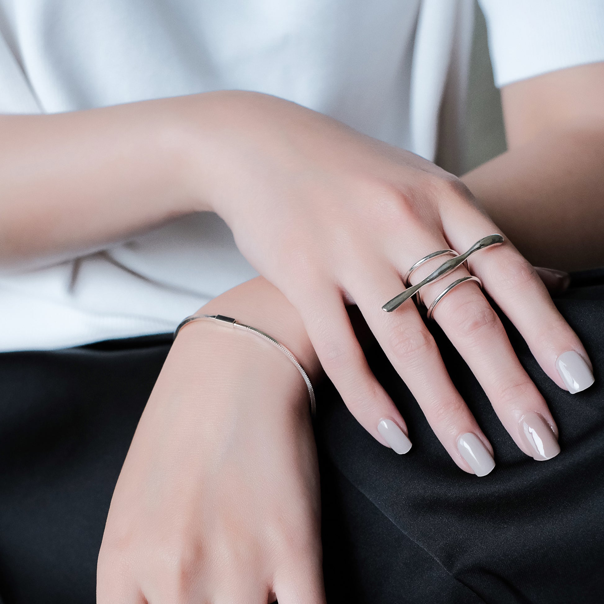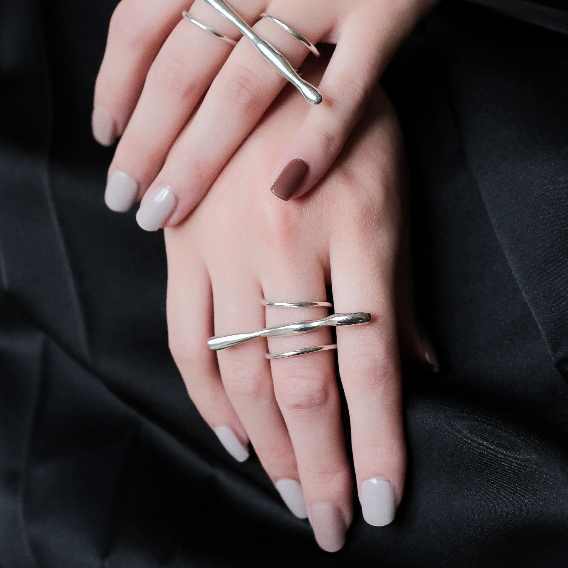 宇宙冰晶系列 - 胭紅薄霧 暴風單指戒 - 純銀